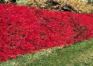 | Burning Bush (Euonymus alatus) is a very familiar hedge. The density of its branches provides a partial screen, even in winter. It grows best in loamy or heavy soil, often showing stress in dry summers or sandy soil. Although burning bush will thrive in partial shade, it achieves its best fall red color in full sun. It can grow 10' tall and wide if left untrimmed. Trimming about one third of large, older stems before leaves emerge is the best way to keep the plant vigorous. |