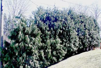 | Alaskan Cedar "Chamaecyparis Nootkatensis Pendula" is a slow growing plant, but if you have the patience and a full sun area, it can be worth the wait! It makes a great weeping screening. Alaskan Cedar has very few insect or disease problems and is easy to maintain because of it's slow growth habit. In areas where deer are present, I would recommend your deer proof spraying it for the winter months up to five feet. |