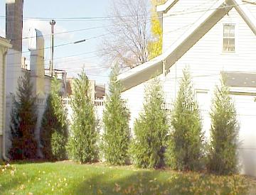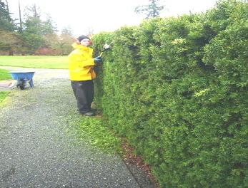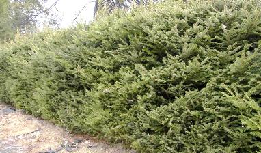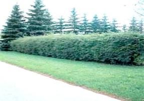 | Cap Yew (Taxus cusp. "Capitata") and Hicks Yew (Taxus media "Hicksii") are also good shade hedges, if deer are not a problem. They do well in sun, tolerate heavy or light soil, and wet or dry areas. They can be easily shaped, especially if trimmed severely before new growth starts, and, if needed, lightly again in August. |