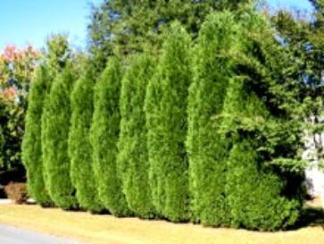 | Thuja Green Giant will grow from 3 to 5 feet per year and will eventually grow to 50 feet or more. Arborvitae Green Giant "Thuja Standishii Plicata" makes a fantastic tall and sturdy hedge with a fairly narrow spread. The color is a deep lustrous green and is pleasantly fragrant. Thuja Green Giant is drought tolerant after it is well established, exhibits no significant pest or disease problems, is bagworm resistant and is hardy to -25F. Deer Resistant! |