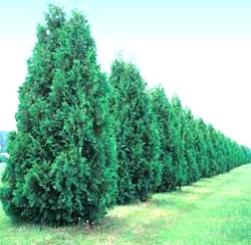 | 'Emerald Green' arborvitae usually reaches just 12'-14', with a spread of 3'-4'. Its foliage comes in flat sprays and, if you look closely, the needles appear covered in scales. Since this tree is not drought-tolerant, water well during hot summers and mulch generously to hold in some of that water. It is probably planted as a hedge in our area more than most other arborvitae's because of it's sturdy branches. In areas where deer are present, I would recommend your deer proof spraying it for the winter months up to five feet. |