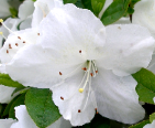 | Azalea "Delaware Valley White" Large (2") single to semi-double white flowers bloom in late May. This strong, spreading grower has large medium green leaves and will grow to 4' in 10 years. Great all time classic Azalea! |
