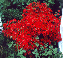 | Azalea "Girard Scarlet" This dwarf plant has dark green foliage. Deep orange-red flowers Blooms mid season |
