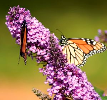 | Butterfly bush is a deciduous to semi-evergreen shrub with a weeping form that can get 6-12 ft (1.8-3.7 m) tall and have a spread of 4-15 ft (1.2-4.6 m). The flowers are irresistible to butterflies. They are borne in long, 8-18 in (20-45.7 cm), cone-shaped clusters that droop in a profusion of color and stay abuzz with winged, nectar-feeding insects from late spring until first frost in autumn. The flower clusters can be so profuse that they cause the branches to arch even more. The flowers of many cultivars are sweetly fragrant. I like to sometimes plant multiple colors together. One of my all time favorite plants! |