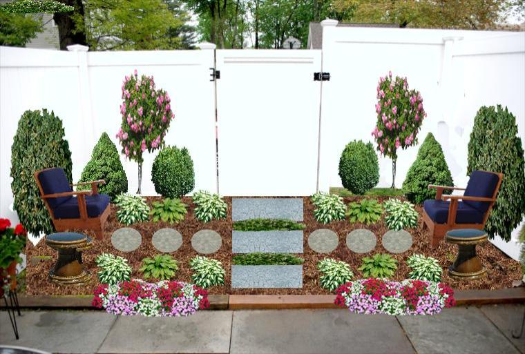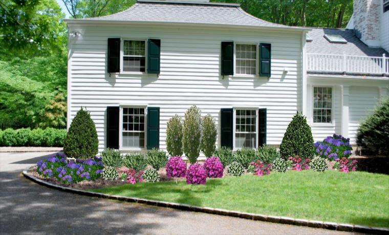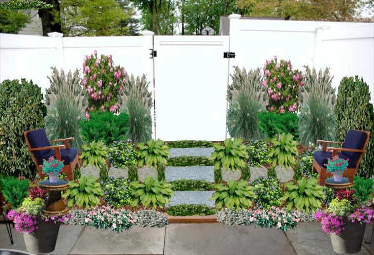 | One of your options with the computerized program would be done with photo imagery. I would take a picture of the area to design, install it on my imagery program, and add photo's of proposed plantings, hardscapes, etc. This is the type of plan that I think is the most beneficial to my customers because you can visually see pretty much what the final product would look like before work begins. Below, I will show you a couple example's of designs that I have done using this technique. |