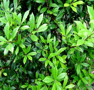 | Long Stalk Holly "Ilex Pendunculosa" Unusual and somewhat rare holly Somewhat irregular growth habit. Deerproof ! Interesting Ficus-like Foliage 15' High/12' Wide |