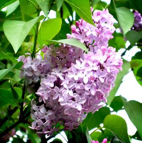 Syringa (Lilac) is a genus of about 20–25 species of flowering plants in the olive family (Oleaceae), native to Europe and Asia. They are deciduous shrubs or small trees, ranging in size from 2 to 10 feet tall, with stems up to four inches in diameter. The leaves are opposite (occasionally in whorls of three) in arrangement, and their shape is simple and heart-shaped in most species, The usual flower color is a shade of purple (often a light purple or lilac), but white and pale pink are also found. The flowers grow in large panicles, and in several species have a strong fragrance. Flowering varies between mid spring to early summer, depending on the species. The most common Lilac's bloom in our area in May. Some other varieties bloom in June. Below, I will show you some of my favorites, which are Hardy here and can usually be obtained locally.