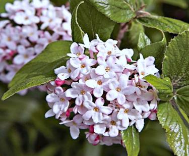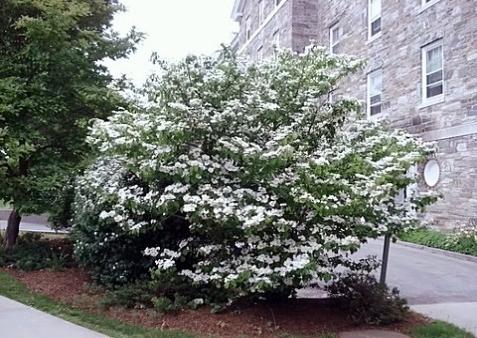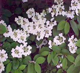 Viburnum plicatum tomentosum 'Mariesii' - the most popular variety, maturing at about 8' tall by 10'